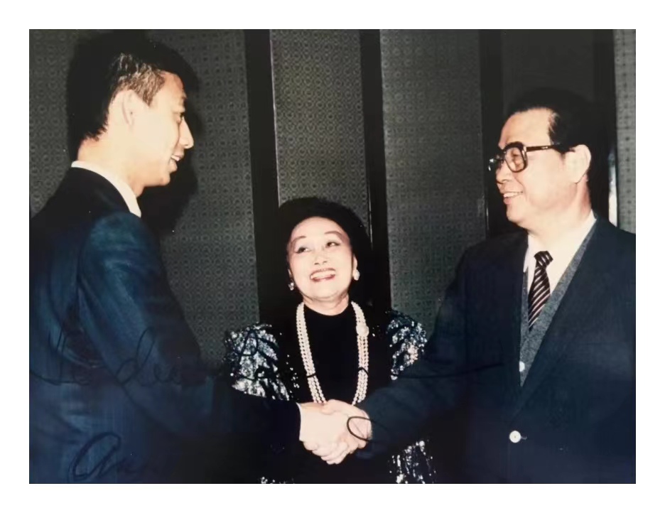 1989年,时任国家总理李鹏接见陈香梅女士和鲁展雨先生 副董事长鲁展雨参加广东省政协会议